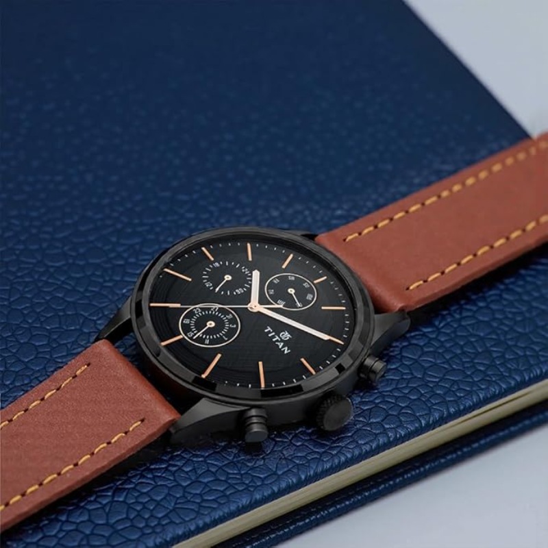 - Dial Color: Black | Strap Color: Brown