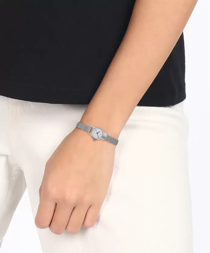 This pretty timepiece is for all the beauty queens out there. The petite round dial exudes oodles of elegance with its plain silver hands and the subtle logo in orange. The mesh metal strap make the watch look very modish. Wave to your followers and woo them with your charm. This watch will ensure that all are eyes are set on you!