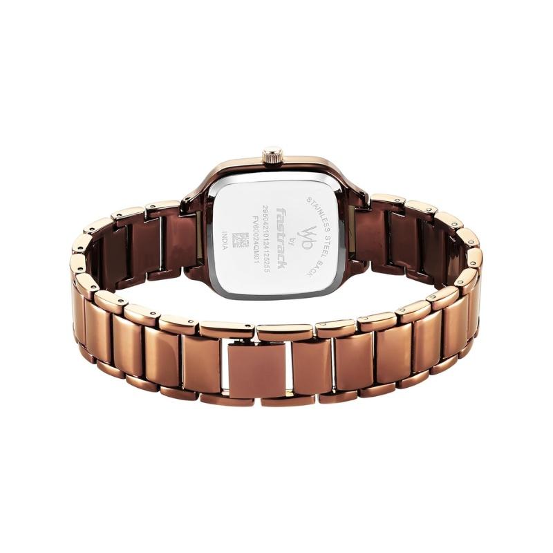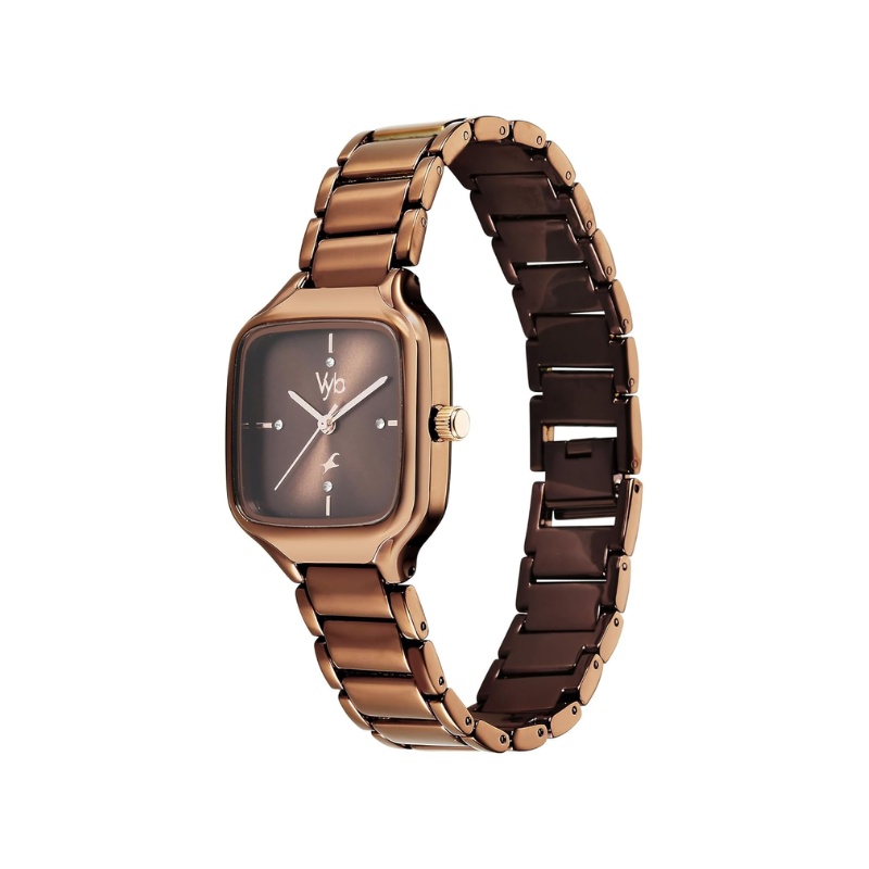 Elevate your style for coffee dates and evening events with this VYB watch featuring a dark brown shining dial, sectoral markings, and a brown metal sleek strap. Pair it with a bohemian-inspired maxi dress or a chic blouse and jeans combination for a laid-back yet stylish look.