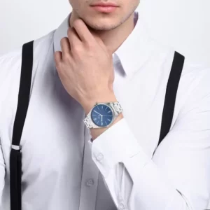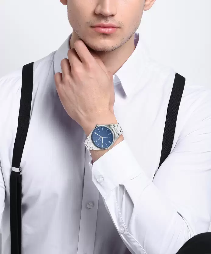 The blue colour on the dial is an instant winner and has a majestic look. The silver-coloured strap comes? with the silver-coloured case, which features a sleek design. Adding to the style element of this everyday Wear,?slender and an ultimate masculine essential.. The watch also comes with a 12-month warranty.
