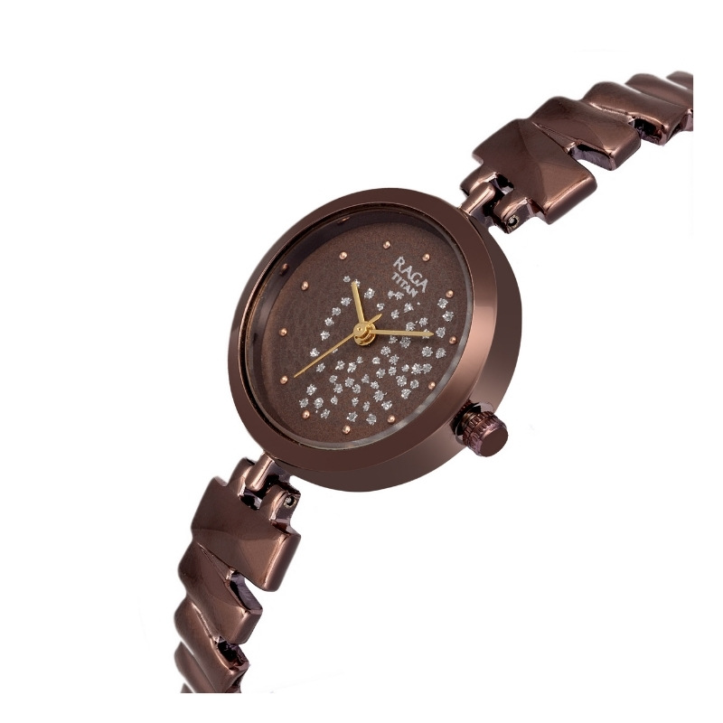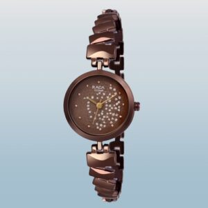 Stylish Brown Analog Watch for Women. Unique Crystal Facet Rose Brown dial, gloss finished Case, Sleek Ergonomic metal strap. This watch is beautifully designed. This is trendy, classy and stylish.