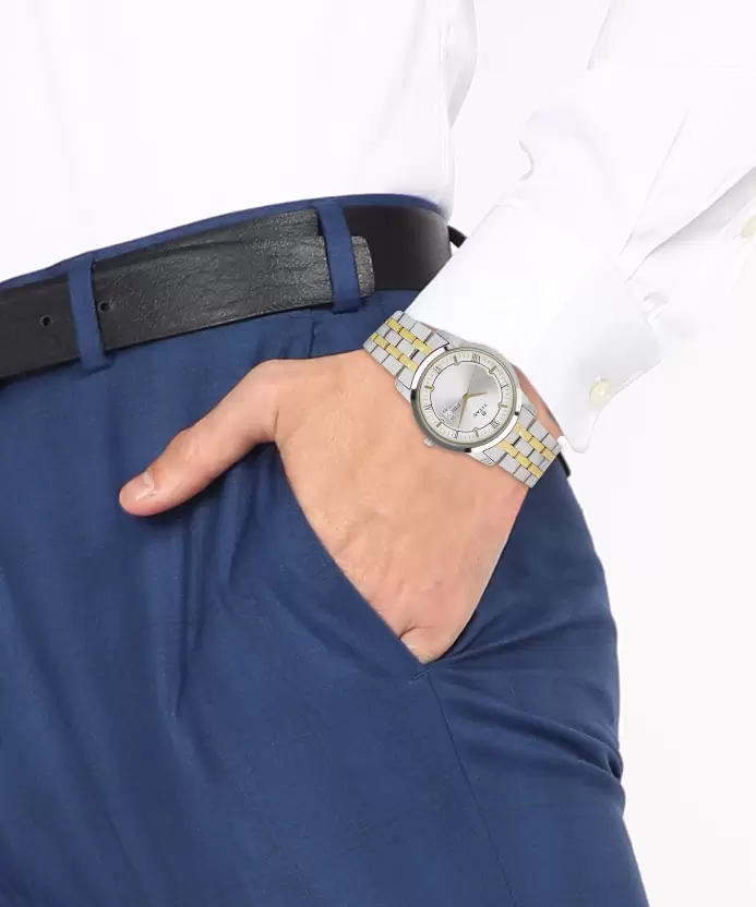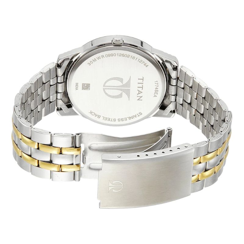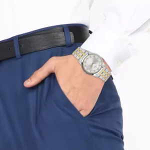 A classy timepiece with bold elegance that is what defines this timeless analog piece from Karishma collection. Housed carefully in a round metal case, is the silver dial with two toned stainless steel strap having Z clasp lock mechanism for the perfect fitting. What’s wonderful is its 3 ATM water resistance and the mineral glass which makes it scratchproof, making it an ideal timepiece for all events and occassions. The ideal blend of style and value, it feature day and date on the dial, keeping you precisely on time everytime.