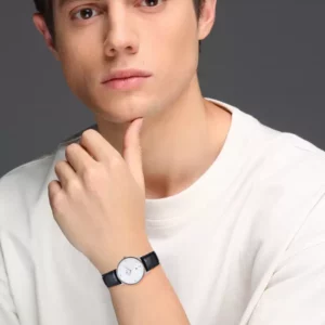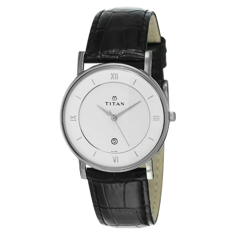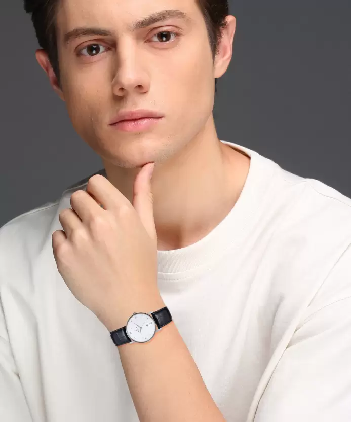 Enhance your style quotient by wearing this men’s analog watch Classique collection. Showcasing a lucid white hue, the round dial features an aperture for added attraction. Crafted from premium quality genuine leather, the strap comes in a shade of black. Team it with a pair of chinos and a shirt to look smart.