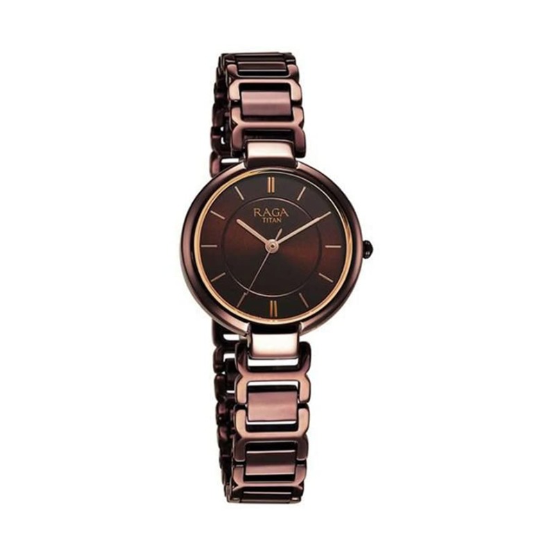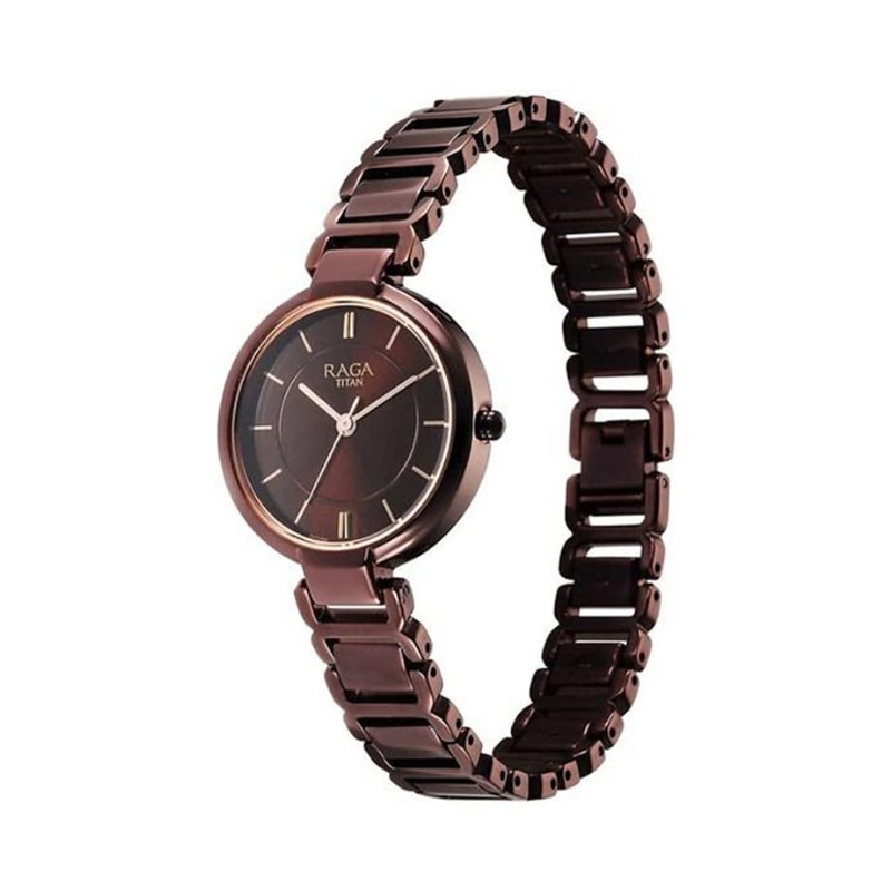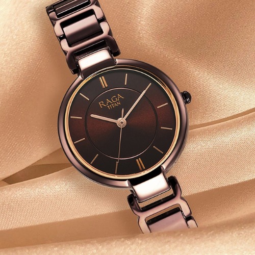 Elevate your style for coffee dates and evening events with this Raga watch featuring a dark brown shining dial, sectoral markings, and a brown metal sleek strap. Pair it with a bohemian-inspired maxi dress or a chic blouse and jeans combination for a laid-back yet stylish look.