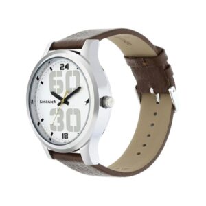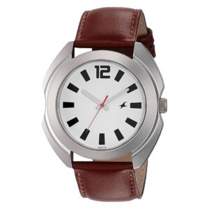 Fastrack Analog White Dial Brown Leather Strap Watch For Men’s