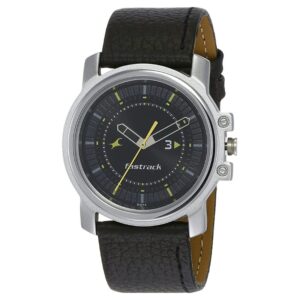 Fastrack Analog Black Dial Black Leather Strap Watch For Men’s