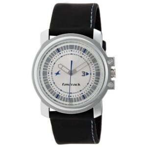 Fastrack Analog Silver Dial Black Leather Strap Analog Men’s Watch