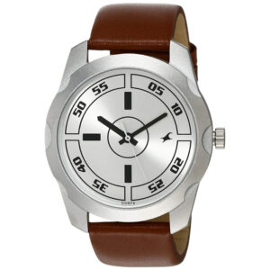 Fastrack Treandy Analog Silver Dial Brown Leather Strap Men’s Watch