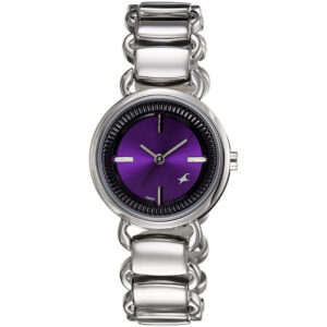 Fastrack Analog Watch for Women, Purple Dial Silver Stainless Steel Strap