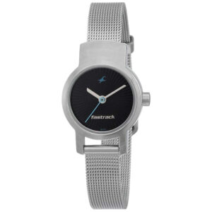 Fastrack Black Dial Silver Steel Strap Analog Wrist Watch for Women’s