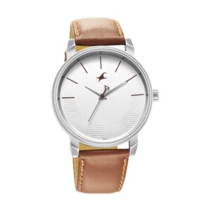 Fastrack Men Stunners Quartz Analog Silver Dial Brown Leather Strap Watch for Men’s